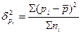 − доля изучаемого признака во всей совокупности, определяемая по формуле: