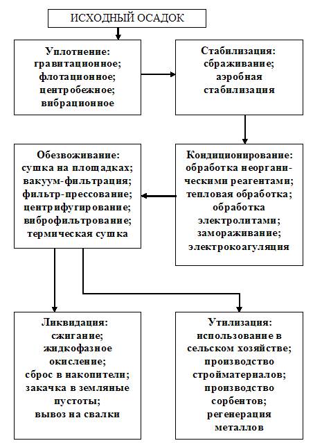 Рис. 10.1.Технологический цикл обработки осадков сточных вод.