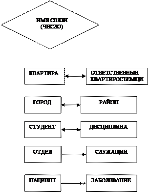 Каждая связь между объектами по числу входящих в нее объектов характеризуется степенью n=2,3,…k (бинарная, тернарная,…,к-арная).