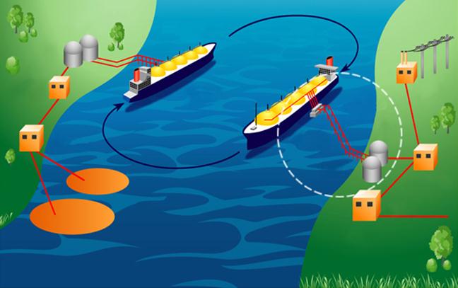 Третий - загрузка СПГ в танкеры-метановозы и морская транспортировка потребителям; сжиженный природный газ перекачивается из хранилища с помощью криогенных насосов в танкеры-метановозы и транспортируется потребителям морским путем;