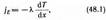 где j E — плотность теплового потока — величина, определяемая энергией, переносимой в форме теплоты в единицу времени через единичную площадку, перпендикулярную оси х, l — теплопроводность, dT/dx — градиент температуры, равный скорости изменения температуры на единицу длины х в направлении нормали к этой площадке. Знак минус показывает, что при теплопроводности энергия переносится в направлении убывания температуры