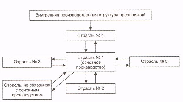 Диверсификация представляет собой объединение ряда производств, относящихся к различным отраслям, не имеющих непосредственной производственной общности, или присоединение, создание новых видов производств на уже действующих предприятиях. Однако некоторые связи между отраслями, как правило, учитываются, например общность исходного сырья, близость технологий, однотипность оборудования, аналогии в условиях сбыта продукции и системе управления. При процессе диверсификации (рис. 4.) сохраняется доминирующая отрасль.