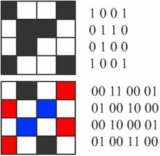 Поскольку линейные координаты и индивидуальные свойства каждой точки (т.е. яркость) можно выразить с помощью целых чисел, то можно сказать, что растровое координирование позволяет использовать двоичный код для представления графических данных. Общепринятым на сегодняшний день считается представление чёрно-белых иллюстраций в виде комбинации точек с 256 градациями серого цвета, и таким образом, для кодирования яркости любой точки обычно достаточно восьмиразрядного двоичного числа.