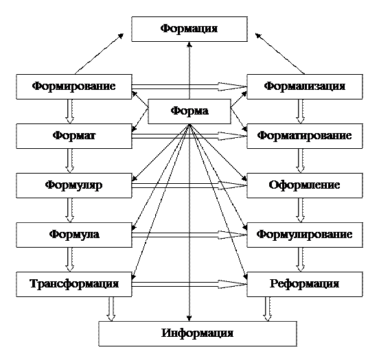 При выяснении места и роли морфологии в инструментарии организации важно помнить и о примате сущности понятий процесса, системы, механизма над формой их реализации. Он проявляется не только в том, что форма становится конкретным результатом построения процесса, создания системы, функционирования механизма, но и в том, что уже осуществляющийся процесс, реально созданная система или действующий механизм могут приобретать, трансформировать и совершенствовать разнообразные, индивидуально специализированные формы.