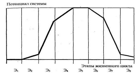 Рисунок 7. Динамика развития системы по этапам жизненного цикла.