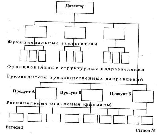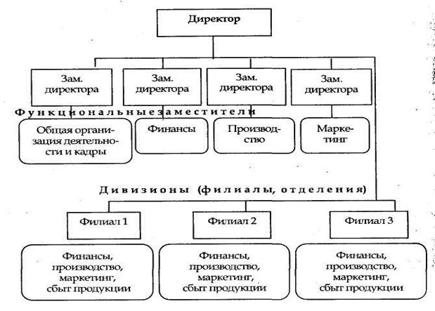Рисунок 26. Дивизиональная организационная структура управления, построенная по комбинированному признаку (смешанная)