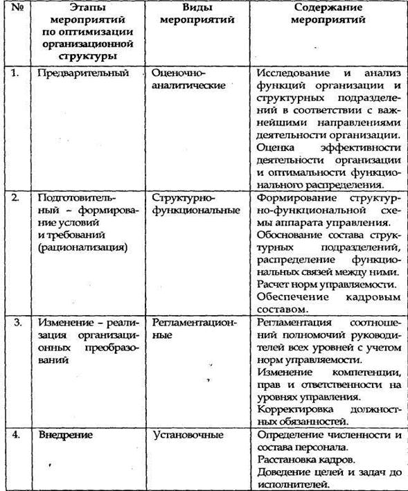 Таблица 2. Этапы организационных преобразований организационной структуры управления