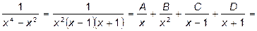 Для разложения исходной дроби на простейшие используем метод неопределенных коэффициентов,
