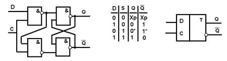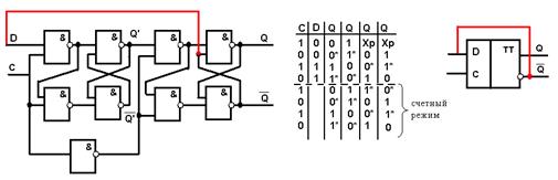рис. 2.8. D-триггер в базисе И-НЕ, построенный по схеме с инвертором