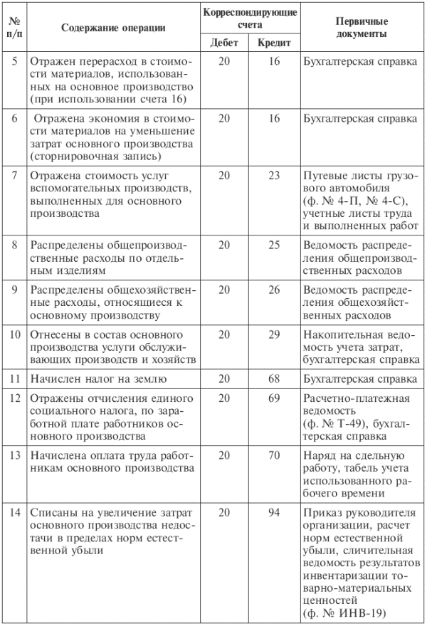 Определяющим среди счетов учета затрат является калькуляционный счет 20 «Основное производство». На нем обобщается информация о затратах производства, продукция (работы, услуги) которого определяет содержание уставной деятельности организации.