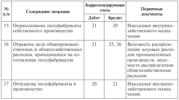 Для учета наличия и движения полуфабрикатов в организациях применяется счет 21 «Полуфабрикаты собственного производства». Полуфабрикаты собственного производства могут быть использованы в дальнейшем при производстве продукции или проданы. По дебету счета 21 «Полуфабрикаты собственного производства» в корреспонденции со счетом 20 «Основное производство» отражают расходы, связанные с изготовлением полуфабрикатов. С кредита счета 21 полуфабрикаты списываются в зависимости от направления их использования либо в дебет счета 20 «Основное производство» при расходовании в собственном производстве, либо в дебет счета 90 «Продажи» при реализации другим организациям и лицам.