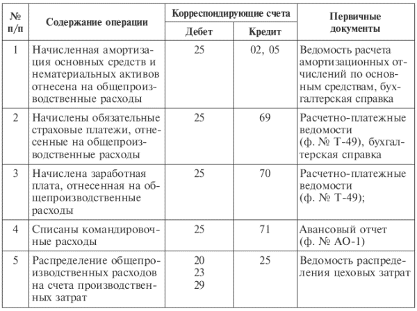 На основании первичных документов, подтверждающих факт и сумму произведенных общепроизводственных расходов, на счетах бухгалтерского учета делаются записи: