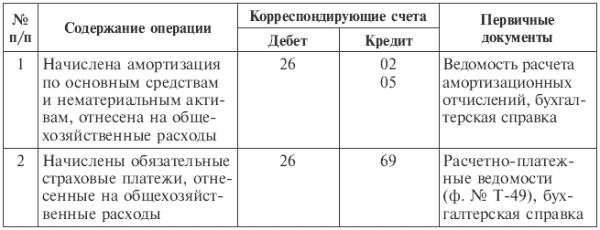 Планирование и учет общехозяйственных расходов ведется по следующей номенклатуре статей: