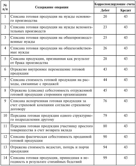 Бухгалтерский учет готовой продукции с применением данного счета ведут по нормативной себестоимости. В этом случае фактически выпущенная и сданная на склад в течение месяца готовая продукция оценивается по нормативной (плановой) себестоимости и отражается по кредиту счета 40 в корреспонденции со счетом 43. Реализованная продукция отражается по нормативной (плановой) стоимости по дебету счета 90 и кредиту счета 43.