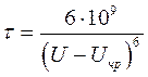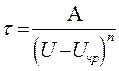 соответственно уменьшается. Экспериментально установлено, что зависимость срока службы т от значения воздействующего напряжения U в диапазоне значений