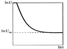 /(U) получили название «кривых жизни» изоляции. Формулой пользуются для случая, когда U > Uчp. При U < Uчр электрического старения изоляции не происходит, и срок ее службы неограниченно возрастает. На рисунке 2.1. приведена «кривая жизни» изоляции в двойном логарифмическом масштабе