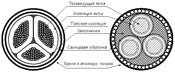 Изоляция кабеля разделяется на фазную, между жилами, и поясную, между жилами и оболочкой.