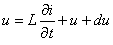 В простейшей постановке резистивными элементами можно пренебречь, считая провода низкоомными, а изоляцию идеальной (рис. 6.2б). Ток i и напряжение u являются функциями координаты и времени, i=i(x,t), u=u(x,t), и при приросте переменной x на малую величину dx они прирастают на малые величины di и du. Можно считать, что параметры схемы замещения пропорциональны длине dx, то есть dL = L0 dx, dC = C0 dx,