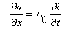 где величины L0 (Гн/км), C0 (Ф/км), называемые первичными параметрами линии, не зависят от координаты x в случае однородной линии, то есть такой линии, у которой провод одинаков по всей длине и параллелен поверхности земли. Эти параметры не зависят обыкновенно также и от времени t. Смысл параметров следующий: L0 - это индуктивность линии длиной 1 км, заземленной на конце, а C0 - емкость изолированной от земли линии длиной 1 км.