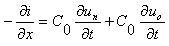 Уравнения по законам Кирхгофа для малого участка dx по рис. 6.2б выглядят следующим образом: