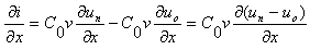 Поскольку дифференцирование падающей волны напряжения по переменной x отличается от дифференцирования по переменной t только сомножителем -v, а для отраженной волны - сомножителем v,