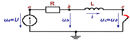 Потенциалы точек схемы рис. 6.9 меняются во времени, что показано на рис. 6.11. Потенциал точки b определяется равенством