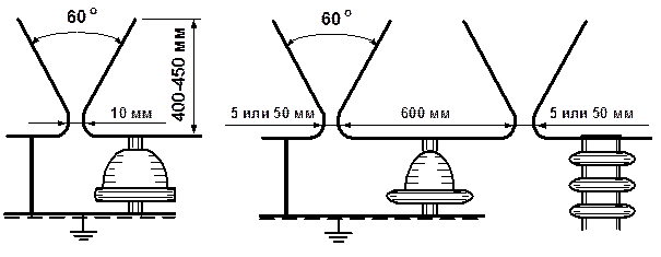 Рисунок 9.2 - Роговые разрядники, применяемые на контактной сети