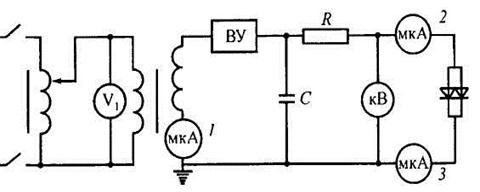 Принципиальная схема установки для испытания изоляции повышенным выпрямленным напряжением показана на рис. 10.10.