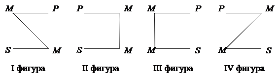 Фигура силлогизма показывает расположение терминов (P, S, М) в посылках. В зависимости от расположения среднего термина различают четыре фигуры силлогизма (рис. 18).