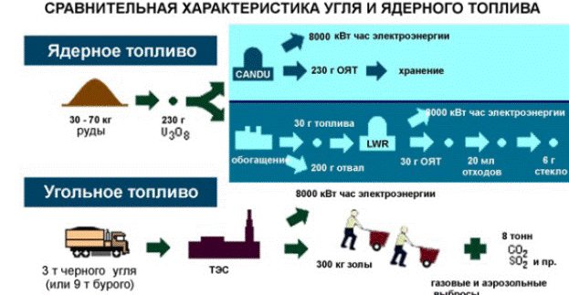 Риск смерти на 10000 занятых в РФ: средний по промышленности 1.3, в угольной – 4.3, в ядерной – 0.8, при чём в последней радиационная составляющая – 0.4%!, а основное – строительство.