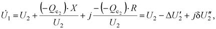 Найдем напряжение в начале линии по данным конца. С учетом на-
