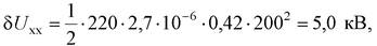 Превышение напряжения δUхх в конце ЛЭП относительно напряжения в начале можно приравнять (с допустимой погрешностью) к продольной составляющей падения напряжения