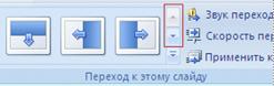 В группе Переход к этому слайду вкладки Анимации выберите нужный вариант перехода.