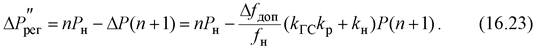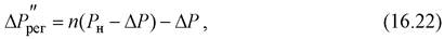 где n – коэффициент, характеризующий максимальную скорость изменения нагрузки в относительных единицах, P н – нагрузка потребителей после изменения, соответствующая номинальной частоте, Δ P – изменение мощности всех генераторов системы и нагрузки в процессе первичного регулирования.