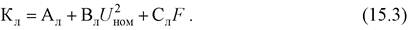 Так, при фиксированном напряжении стоимость 1 км линии от площади сечения F описывают линейной зависимостью