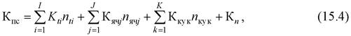 где Кti, Кяч j, Кку к – стоимость однотипных трансформаторов (автотрансформаторов), ячеек распределительных устройств и компенсирующих устройств соответственно; nti, nяч j, nк ук – соответственно число однотипных элементов из общего числа I, J, K.