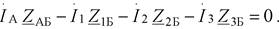 Предположим, что под воздействием нагрузок в узлах токи в ветвях приняли указанные на схеме направления. В соответствии со вторым законов Кирхгофа можно записать