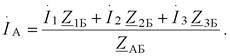 Правило моментов может быть аналогично применено и для определения тока на головном участке Б. В этом случае моменты токов находят относительно узла А: