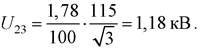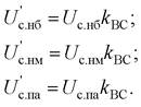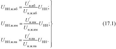 Найденные при этом напряжения, приведенные к высшему напряжению: