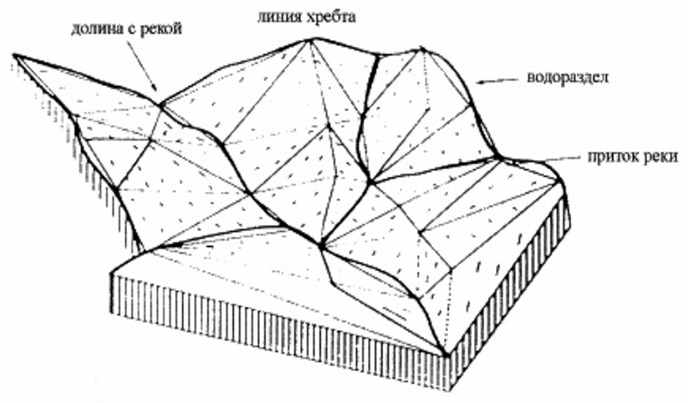 TGRID (triangulated grid) – модель, сочетающая в себе элементы моделей TIN и GRID. Такие модели имеют свои преимущества, например, позволяют использовать дополнительные данные для описания сложных форм рельефа (обрывы, скальные выступы).
