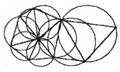 Триангуляция Делонев приложении к двумерному пространству формулируется следующим образом: система взаимосвязанных не перекрывающихся треугольников имеет наименьший периметр, если ни одна из вершин не попадает внутрь ни одной из окружностей, описанных вокруг образованных треугольников (рис.6).