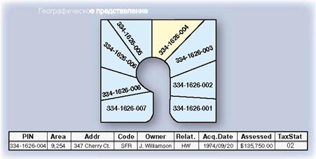Помимо географических представлений, наборы данных ГИС включают традиционные табличные атрибуты, описывающие географические объекты. Многие таблицы могут быть связаны с географическими объектами по общим полям (их часто на зывают ключевыми). Подобные табличные наборы информации и отношения (взаимосвязи) играют ключевую роль в моделях данных ГИС, аналогичную той, которую они выполняют в традиционных приложениях, работающих с базами данных.