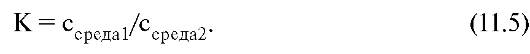 Коэффициент распределения вещества (К) - величина, равная отношению концентраций частиц в граничащих средах: