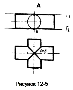 Признак касания поверхностей: если две поверхности в какой-либо общей для них точке имеют одну и ту же касательную плоскость (Г1 или Г2), то они касаются друг друга в этой точке. В нашем примере поверхности имеют двойное касание в точках А и В.