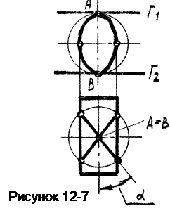 Точки А и В будут точками двойного прикосновения, т.к. в них можно провести общие касательные плоскости Г¹ и Г² к цилиндру и сфере.