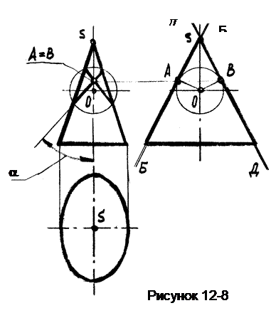 Следовательно, если пересекать поверхность эллиптического конуса плоскостью под углом a к его оси, то получим в сечении окружность.