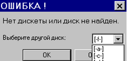 Если при обращении, например, к дисководу выясняется, что там нет диска или он по какой-то причине недоступен для считывания, появится сообщение об ошибке (рис. 7.12) и пользователю будет предложено выбрать другой диск.