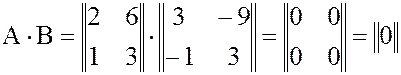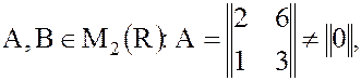 2. В кольце квадратных матриц второго порядка также существуют делители нуля: