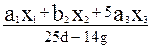 Запись на Pascal: (a1*x1+b2*x2+5*a3*x3)/(25*d-14*g)