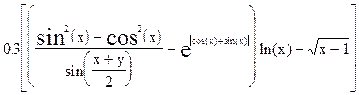0.3*(((sin(x)*sin(x)-sqr(cos(x)))/sin((x+y)/2)-exp(abs(cos(x)+sin(x))))*ln(x)-sqrt(x-1))